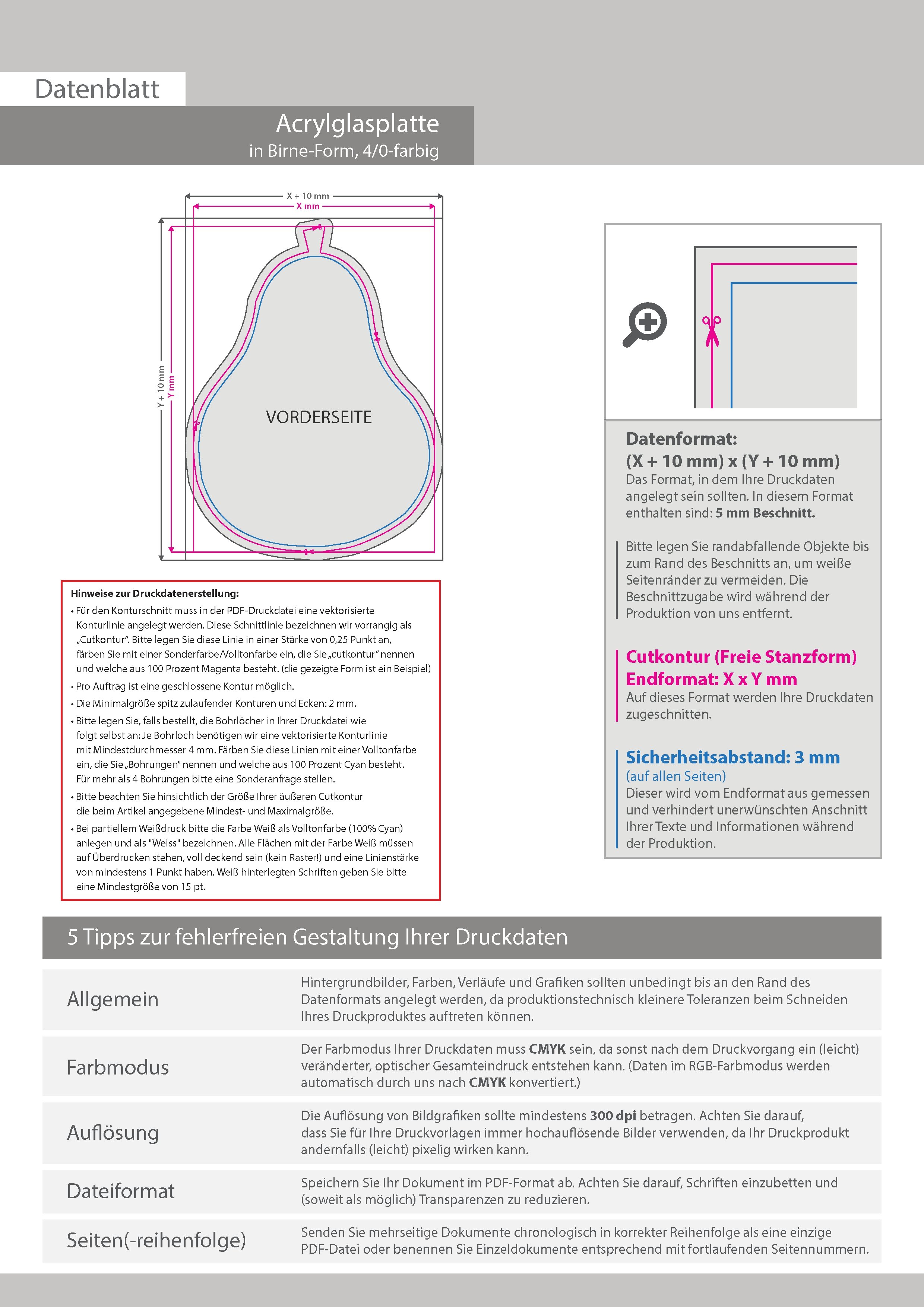 Acrylplatte mit Echtglasbeschichtung in Birne-Form konturgefräst