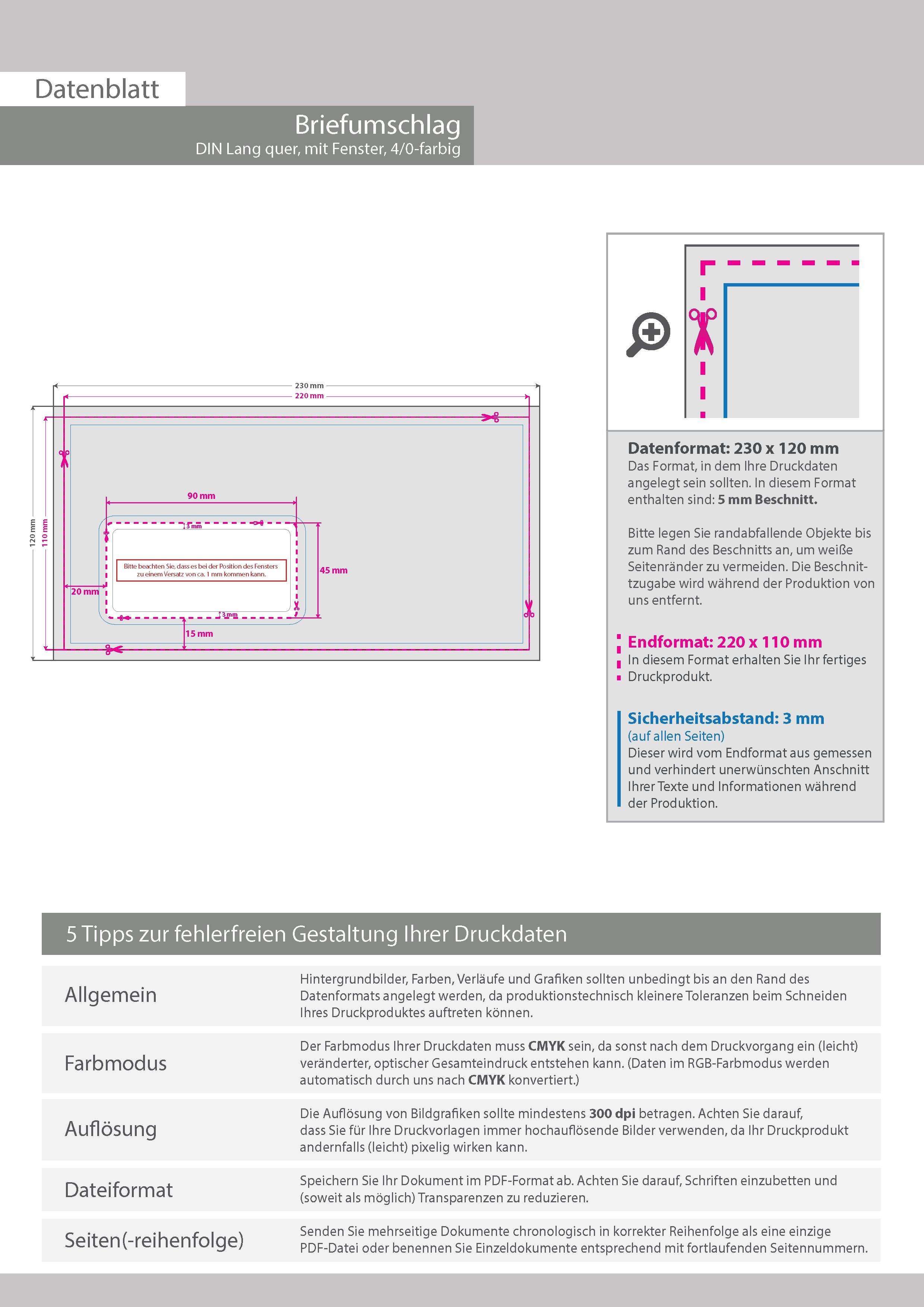 Briefumschlag DIN lang quer, haftklebend mit Fenster, einseitig 4/0 farbig bedruckt