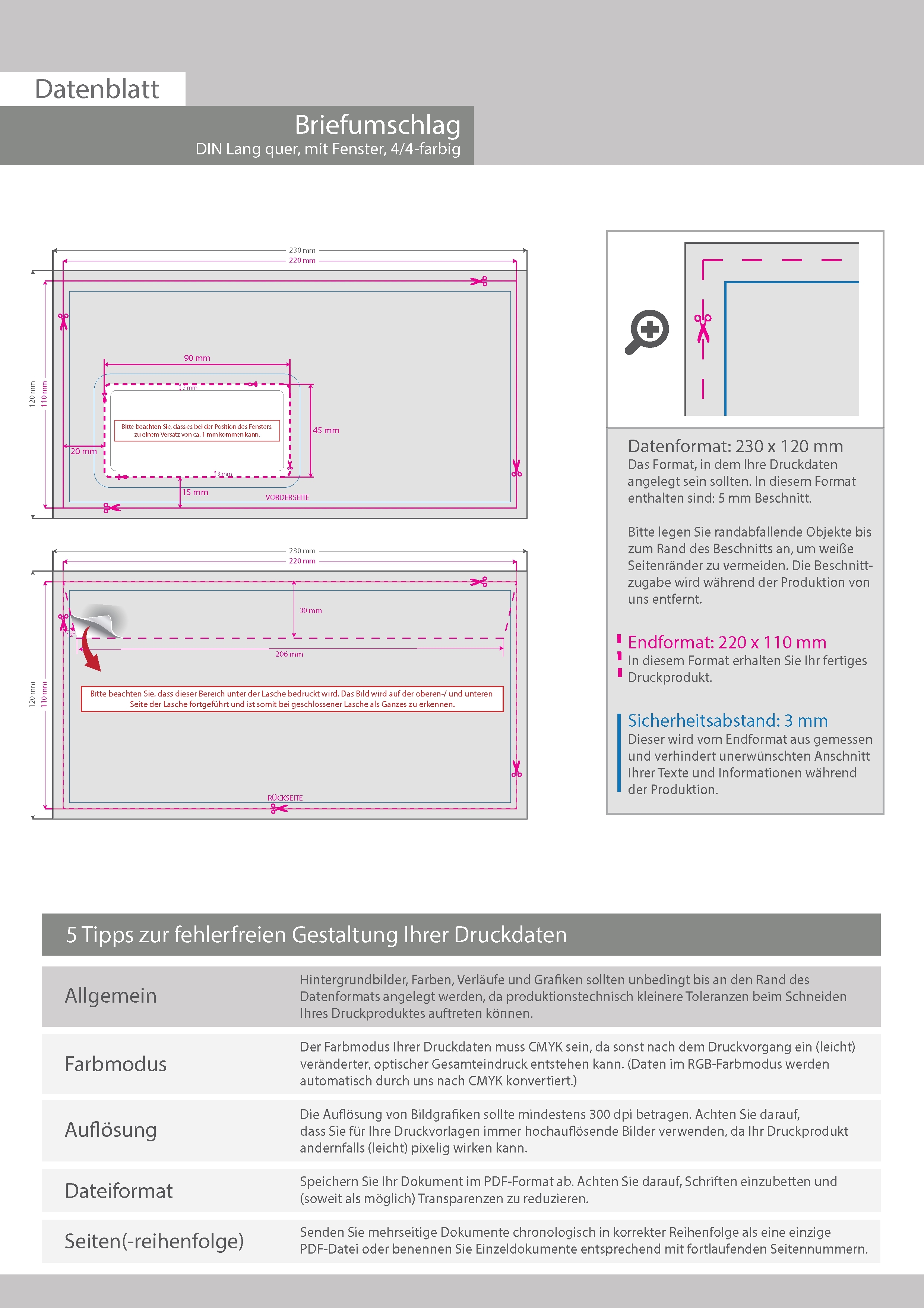 Briefumschlag DIN lang quer, haftklebend mit Fenster, beidseitig 4/4 farbig bedruckt