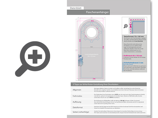 Flaschenanhänger 60 x 150 mm mit Falz, 4/0-farbig einseitig bedruckt, mit einseitiger Lackierung Hochglanz