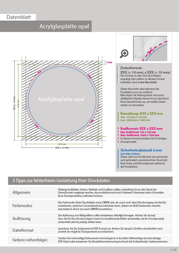 Acrylglasplatte opal rund (kreisrunde Kontur), einseitig 4/0-farbig bedruckt